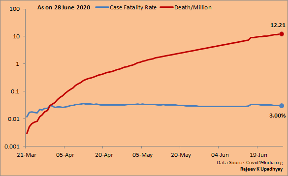 11. The numbers of patients in India are increasing but India is still doing better than most of the countries in the world on account of death per million with an average of 12.21 against the world average of 66.43.